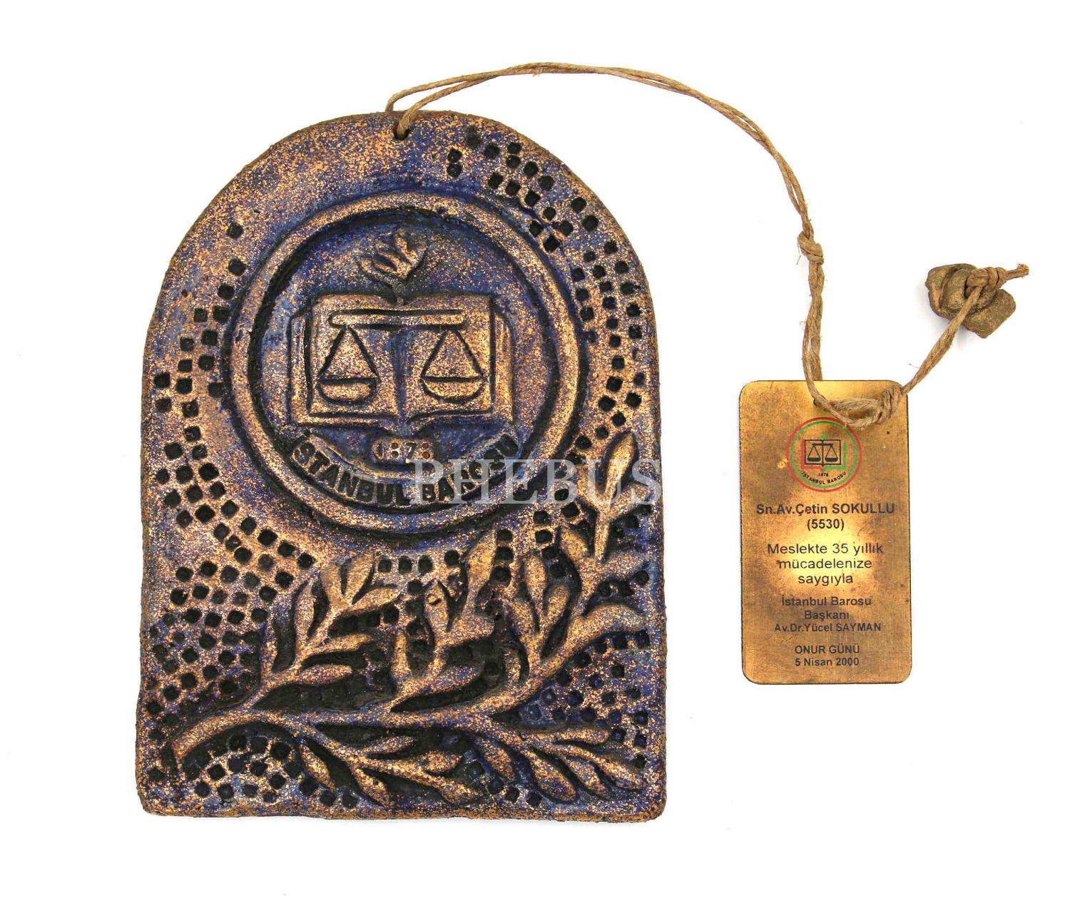 İstanbul Barosu 5 Nisan 2000 Onur Günü saygı plaketi, 18x13 cm