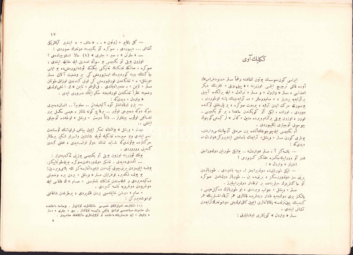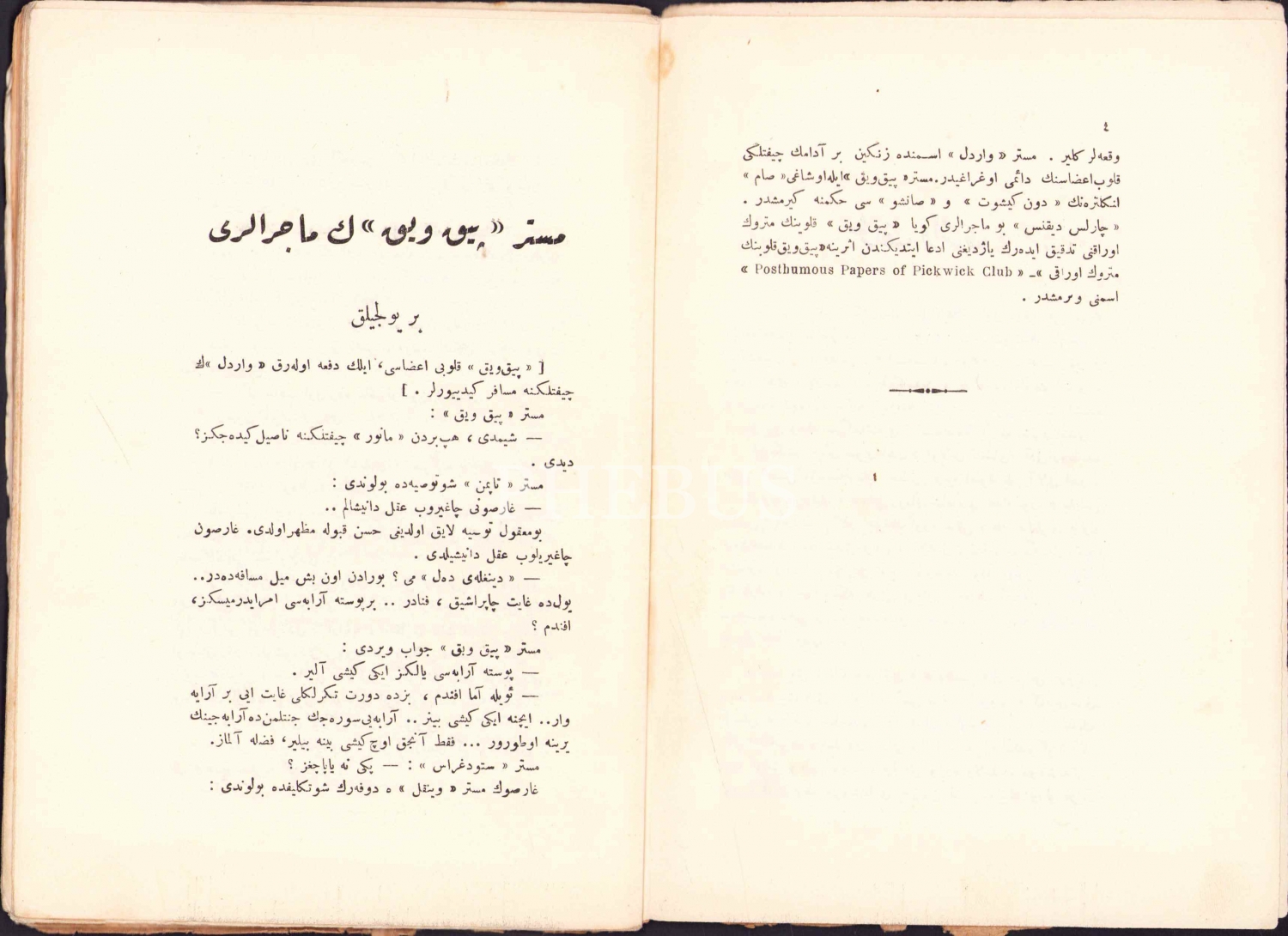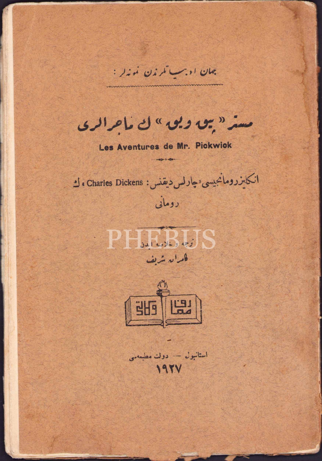 Osmanlıca Cihan Edebiyatlarından Numuneler: Mr. Pickwick'in Maceraları - Roman -, Charles Dickens, çev. Kamuran Şerif, Devlet Matbaası, İstanbul 1927, sırtı haliyle, 57 sayfa, 14x20 cm