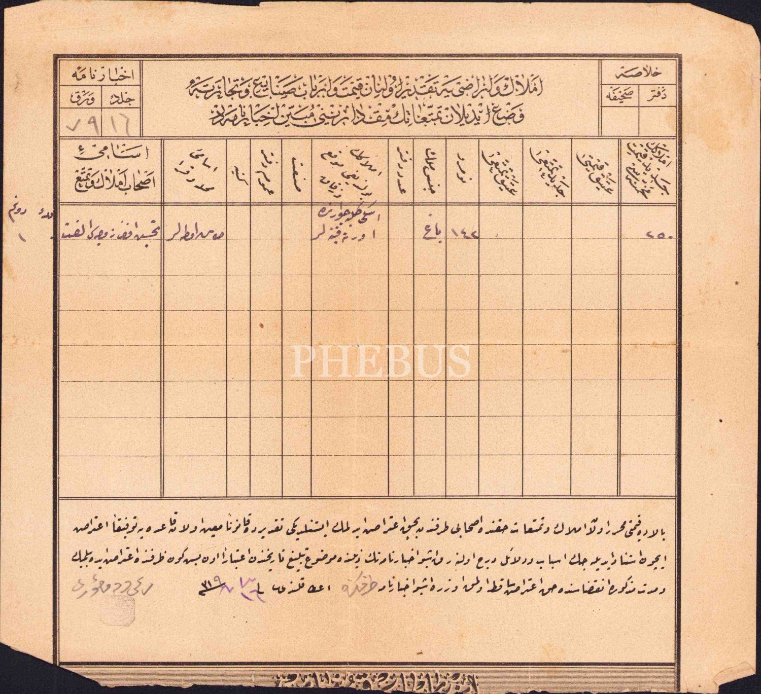 Osmanlıca emlak ve araziye takdir olunan kıymet ve erbab sanayi ve ticaret vazı edilen temettuat miktarına mübeyyin ihtarname, 1319, 21x20 cm