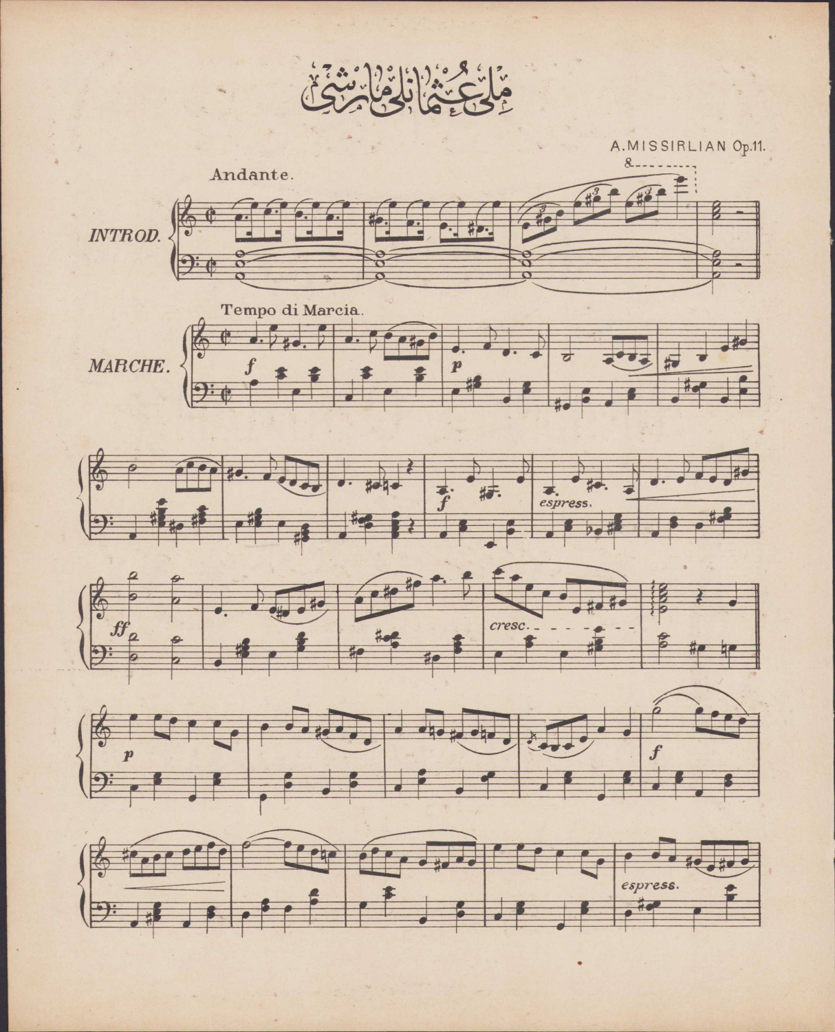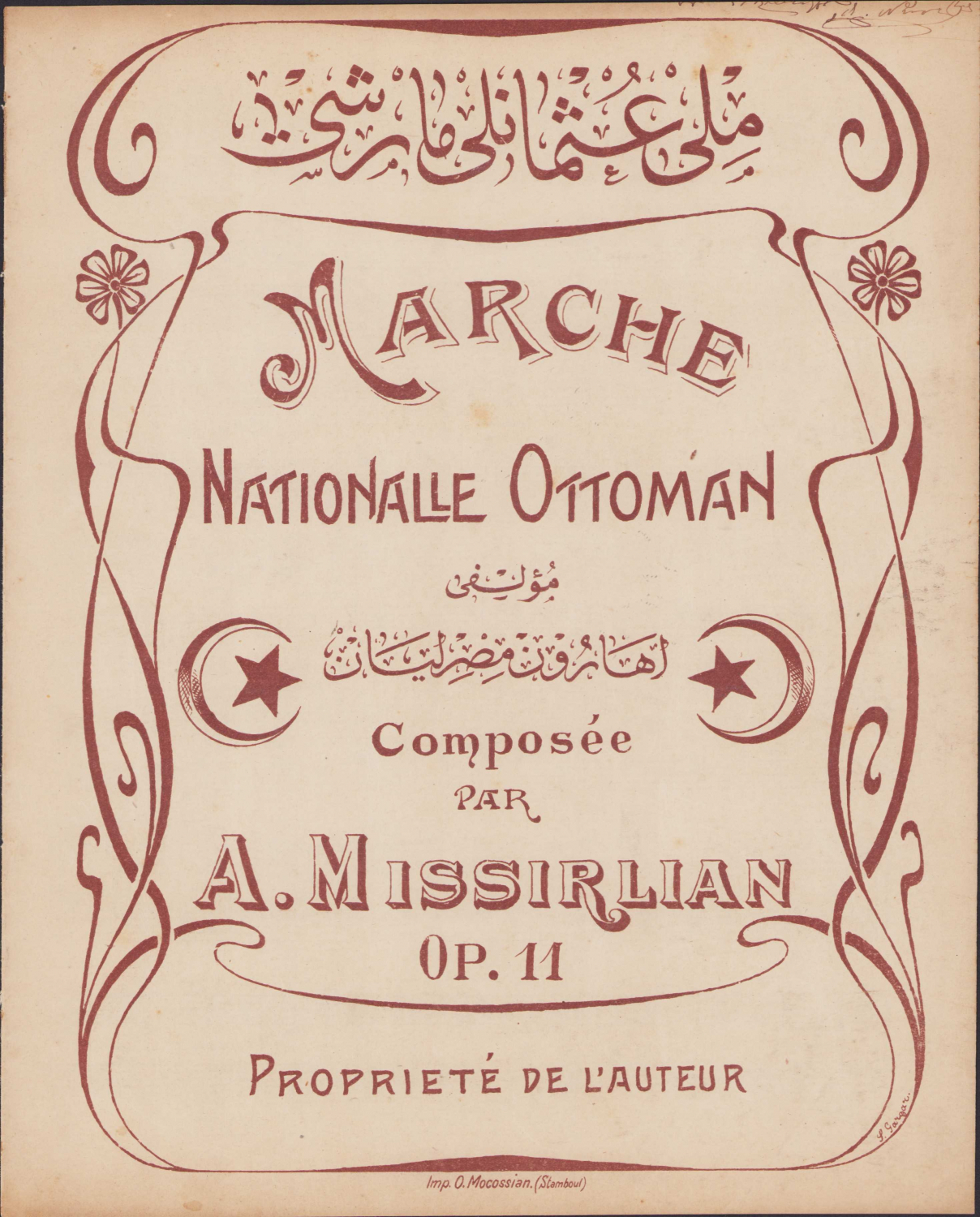 Milli Osmanlı Marşı, Fransızca - Osmanlıca, Müellifi A. Mısırlıyan, 4 sayfa 25x31cm