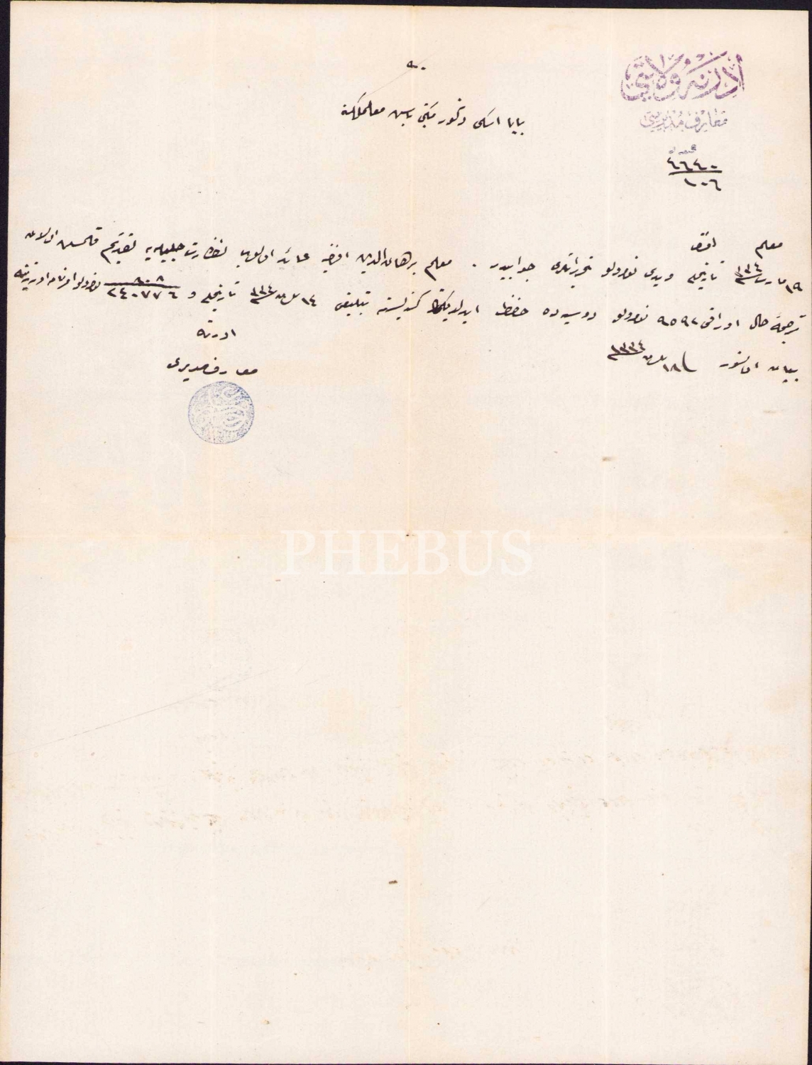 Edirne Vilayeti antetli Edirne Vilayeti Babaeski Numune Mektebi baş mualliğine gönderilmiş, Burhaneddin Efendi'nin gönderdiği tercüme-i hali dosyasına eklendiğine dair 1134 tarihli Osmanlıca evrak, 16x22 cm