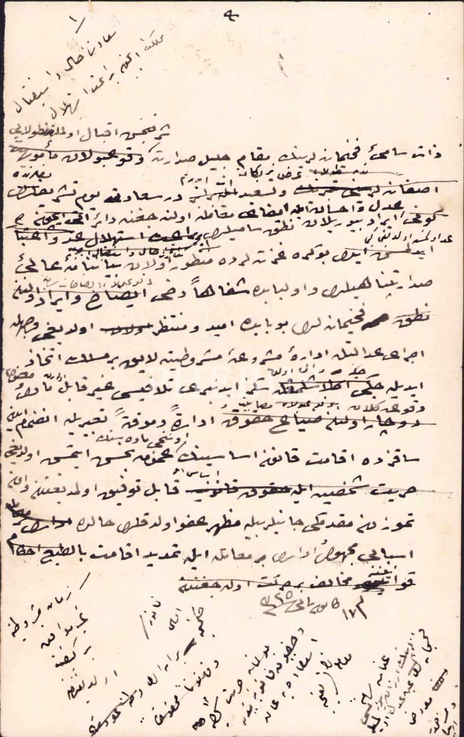 Osmanlıca Meşrutiyet ve Sakız Adası hakkında Sadarete gönderilmiş istida sureti, 1325 tarihli, 13x22 cm