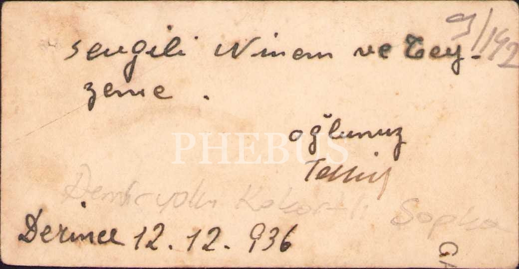 Demiryolu kokartlı şapkalı memur, arkası ithaflı 1936, 8x4 cm