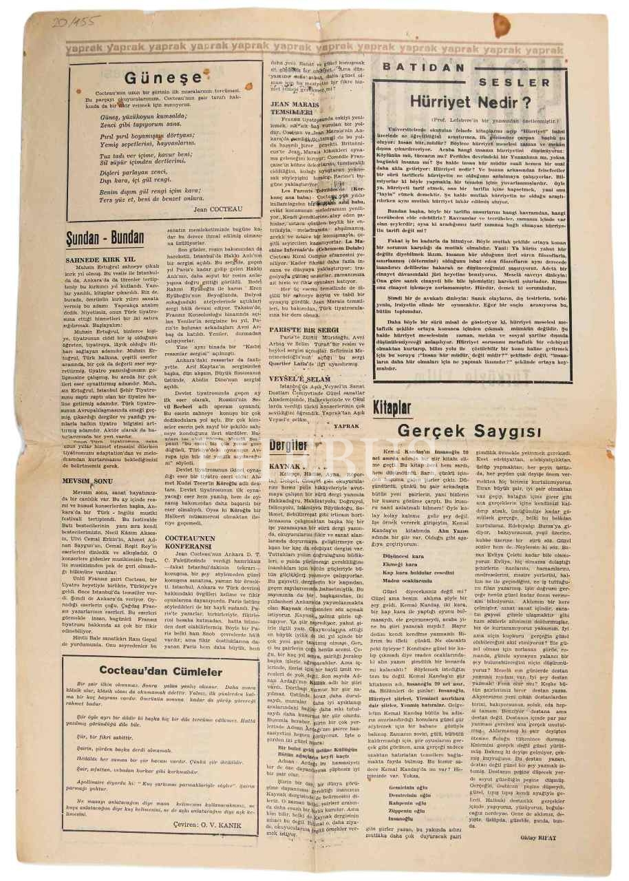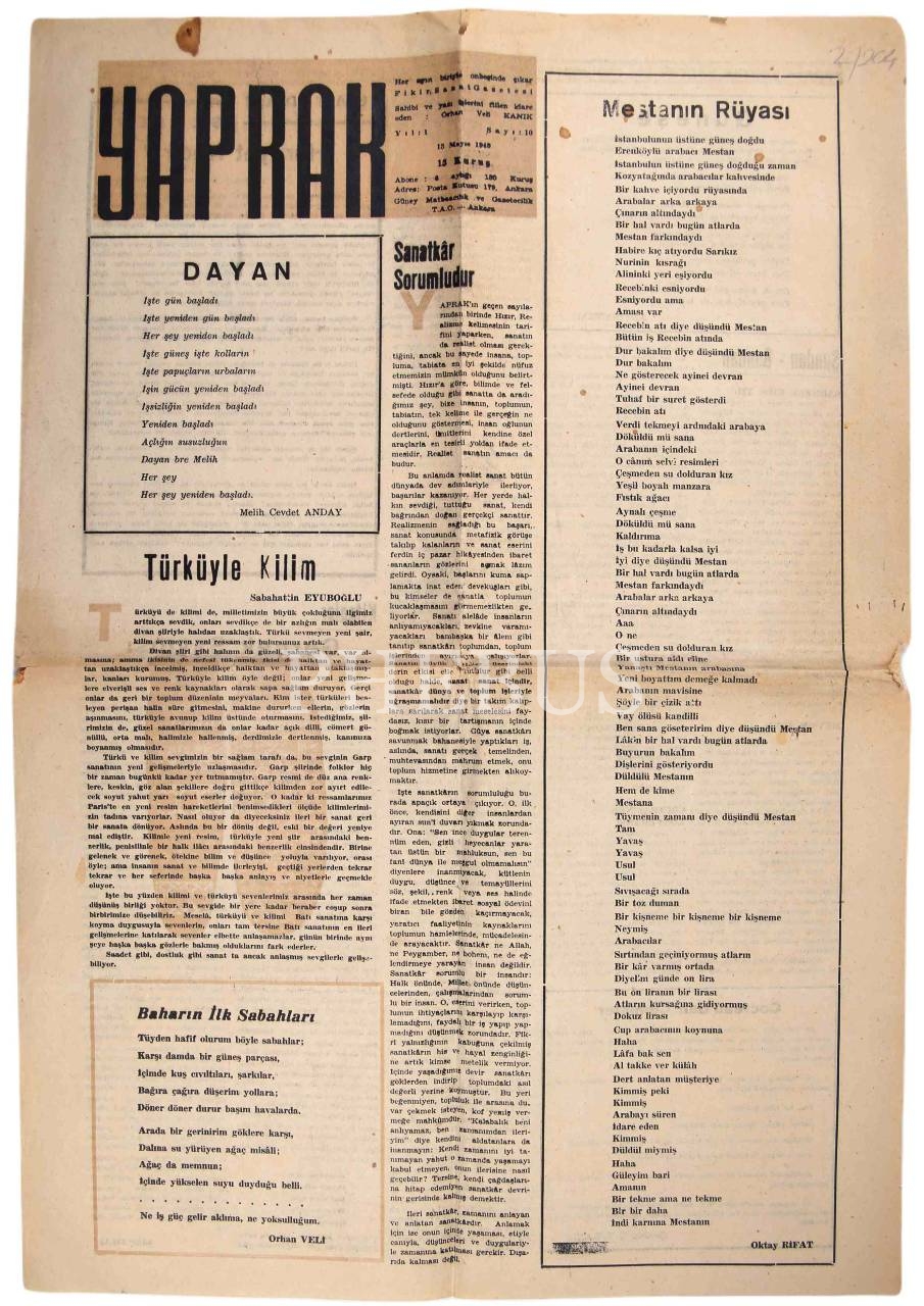 Yazı işlerini Orhan Veli Kanık'ın yönettiği Yaprak fikir ve sanat gazetesi, 2 sayfa, 50x33 cm