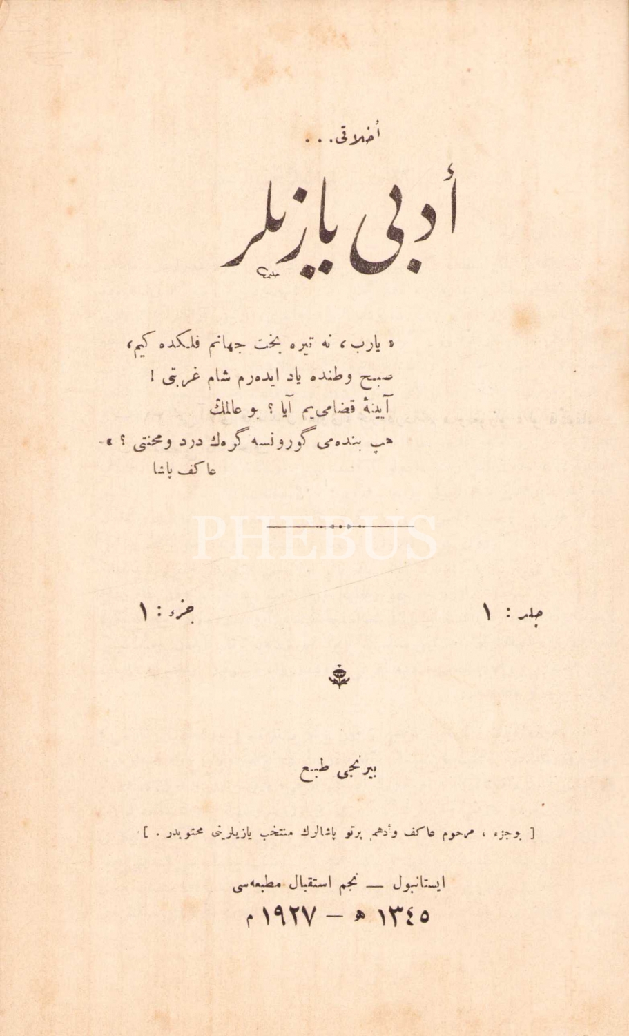 Osmanlıca Edebi Yazılar Cilt: 1, Cüz: 1, 2, Yedinci baskı, Necm-i İstikbal Matbaası, İstanbul 1927, 124 sayfa, 14x21 cm
