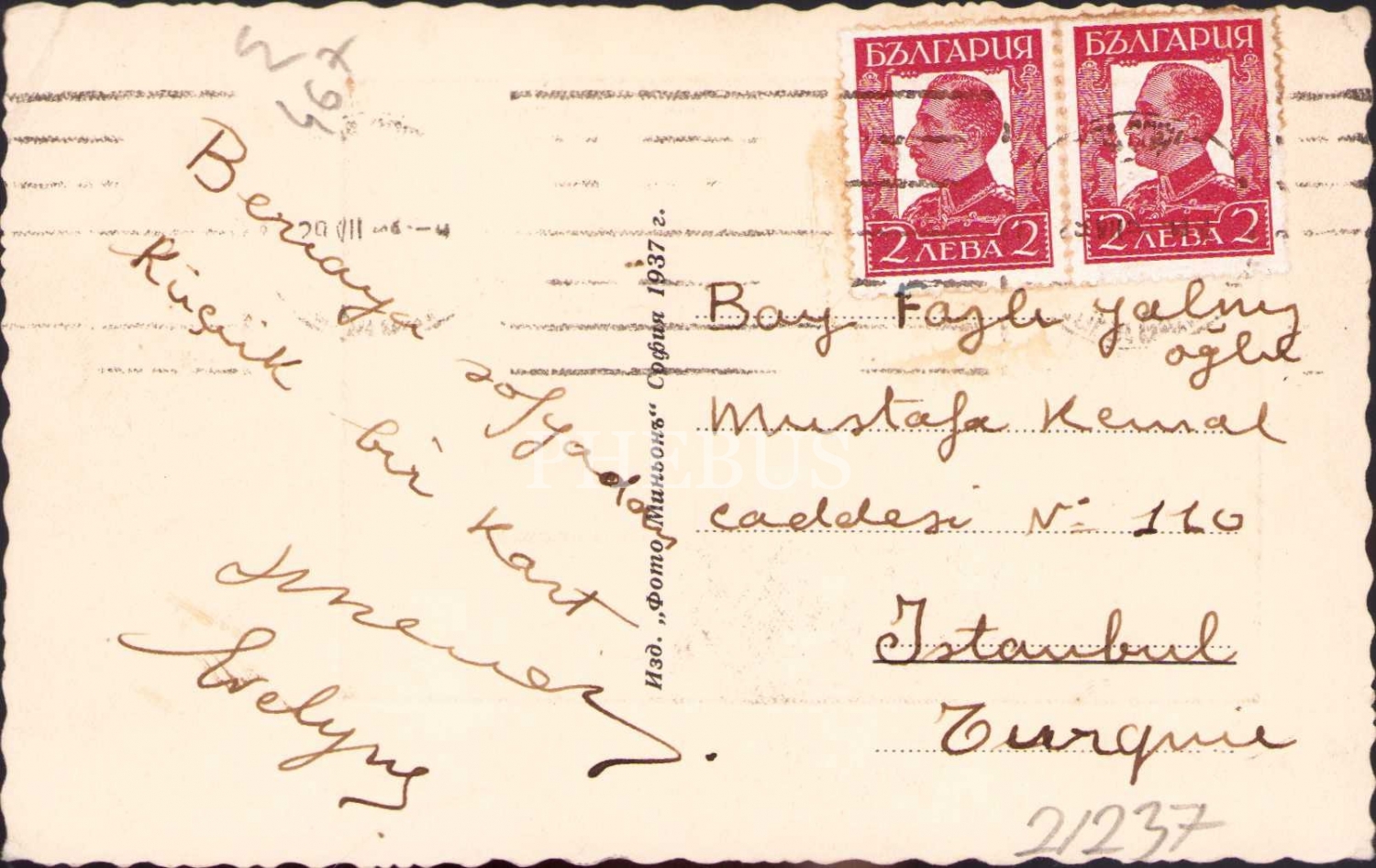 Sofya'dan İstanbul'a gönderilmiş damgalı pullu kartpostal