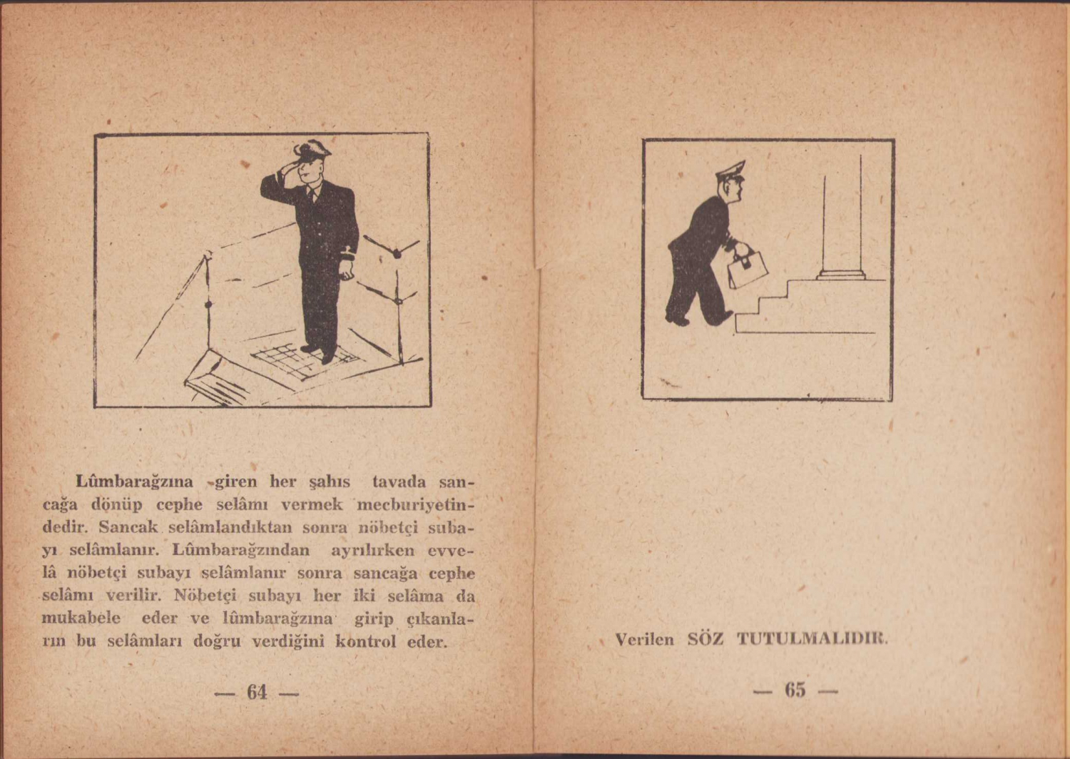 Bahriyede Nezaket Kaideleri kitapçığı, TC. Deniz Basımevi baskısı, bol çizim görselli, 1949 tarihli, 65 sayfa, ederi 15 kuruş, 9,5x12,5cm