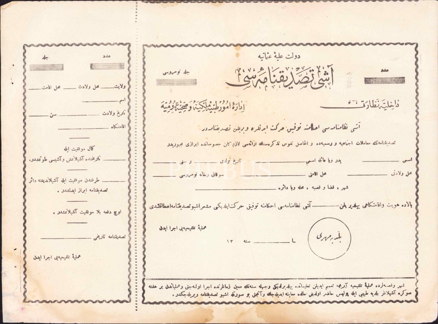 Osmanlıca aşı tasdiknamesi, boş, 29x21 cm
