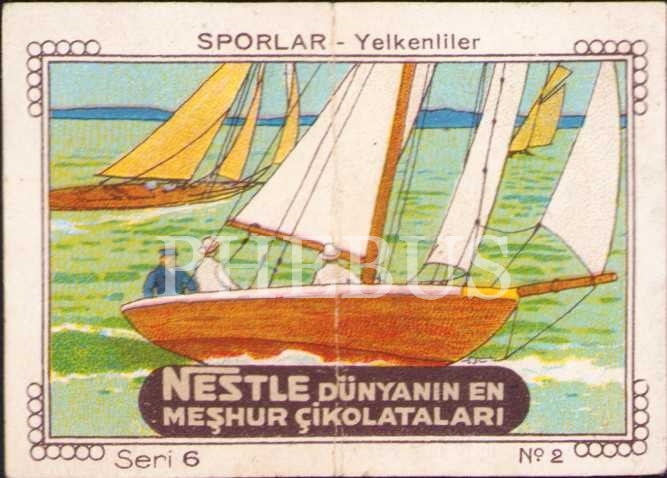 Nestle "Dünyanın En Meşhur Çikolataları" yazılı, Yelkenliler reklam pulu, 5x3 cm