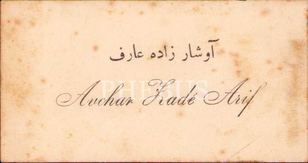 Avşarzade Arif Bey'e ait kartvizit, 8x4 cm