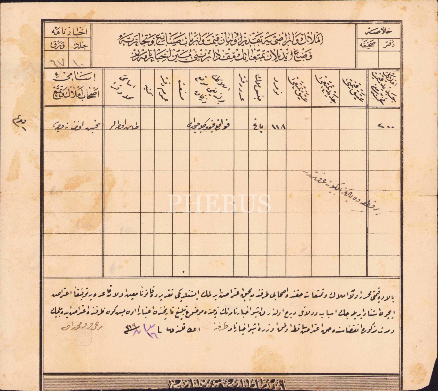 Osmanlıca emlak ve araziye takdir olunan kıymet ve erbab sanayi ve ticaret vazı edilen temettuat miktarına mübeyyin ihtarname, 1319, 21x20 cm
