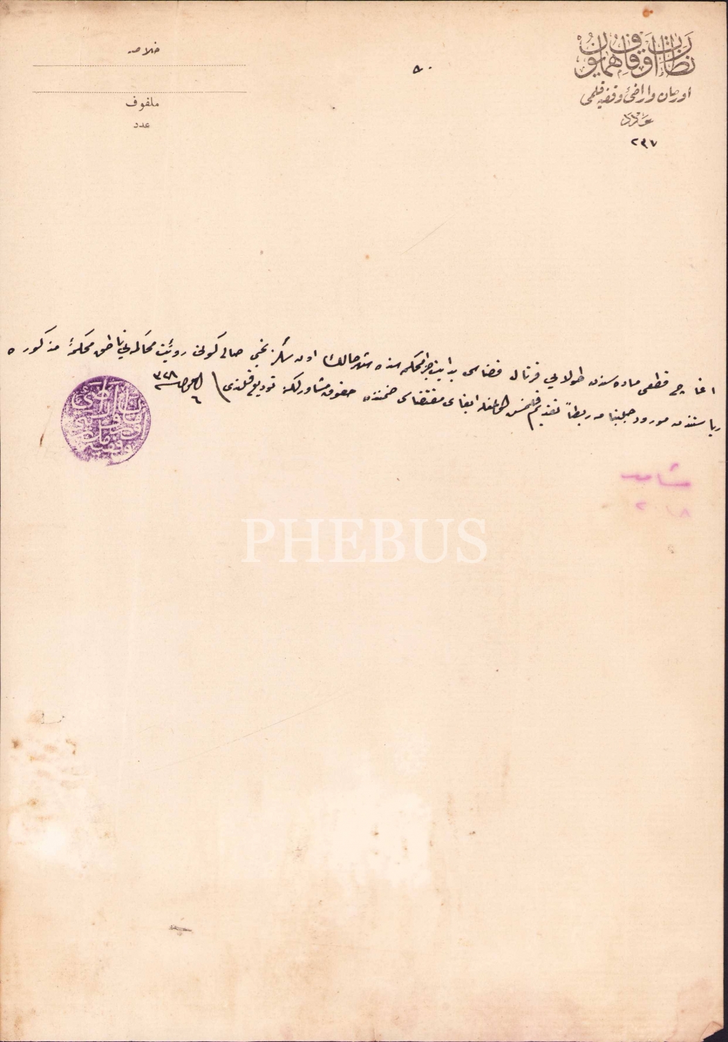 Osmanlıca Nezaret-i Evkaf-ı Hümayun antetli 1328 tarihli Osmanlıca evrak, 21x30 cm