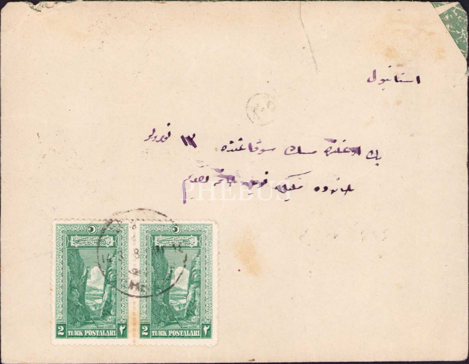Beyoğlu'nda Melike Hanımefendi'ye gönderilmiş, postadan geçmiş mektup, 1928 tarihli