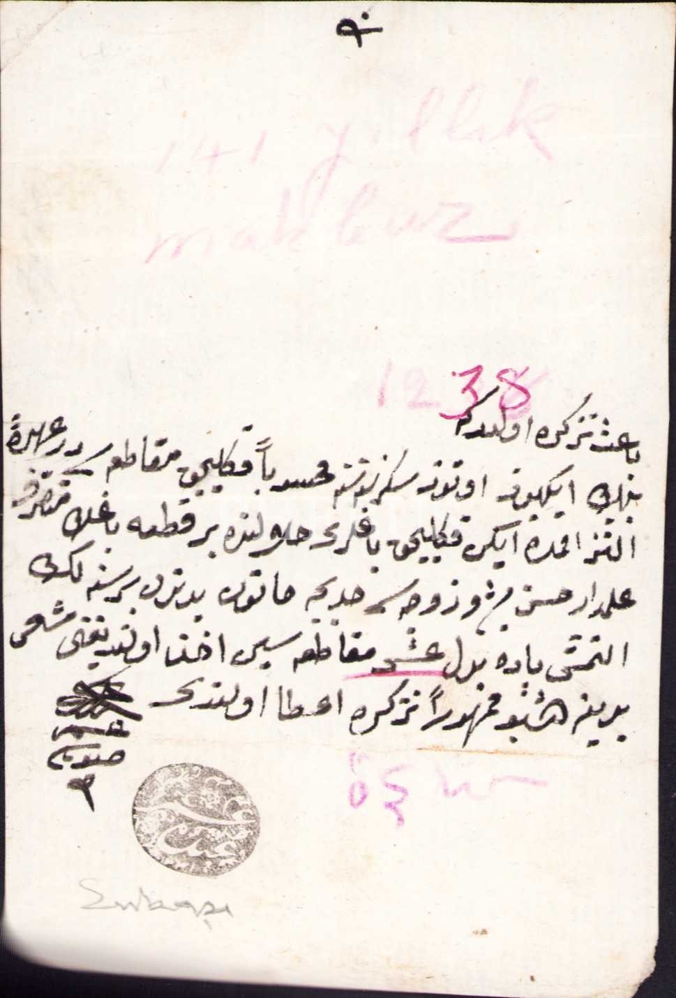 1238 tarihli iki senelik makbuz senedi, 8x12 cm