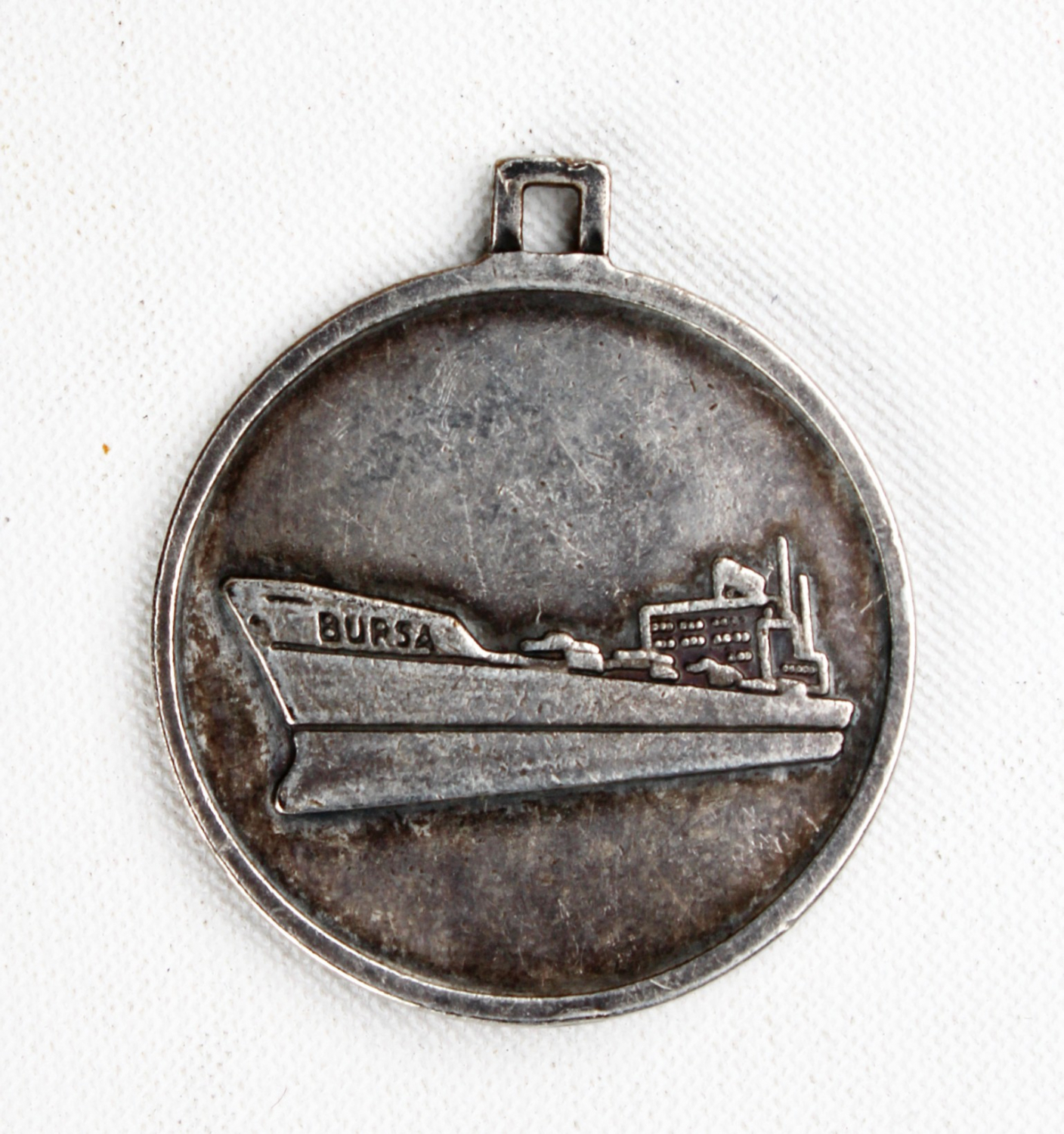 Bursa gemisi görselli madalyon, Deniz Nakliyatı TAŞ üretim, çapa detaylı, çap 3,5 cm