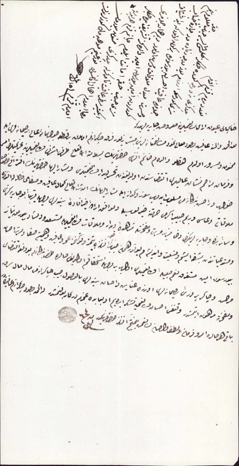 Osmanlıca Fatıma Nafia mühürlü, 1264 tarihli Osmanlıca evrak, 18x35 cm