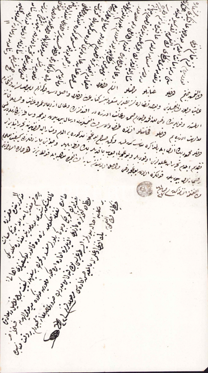 Osmanlıca Fatıma Nafia mühürlü, 1261 tarihli Osmanlıca evrak, 18x35 cm