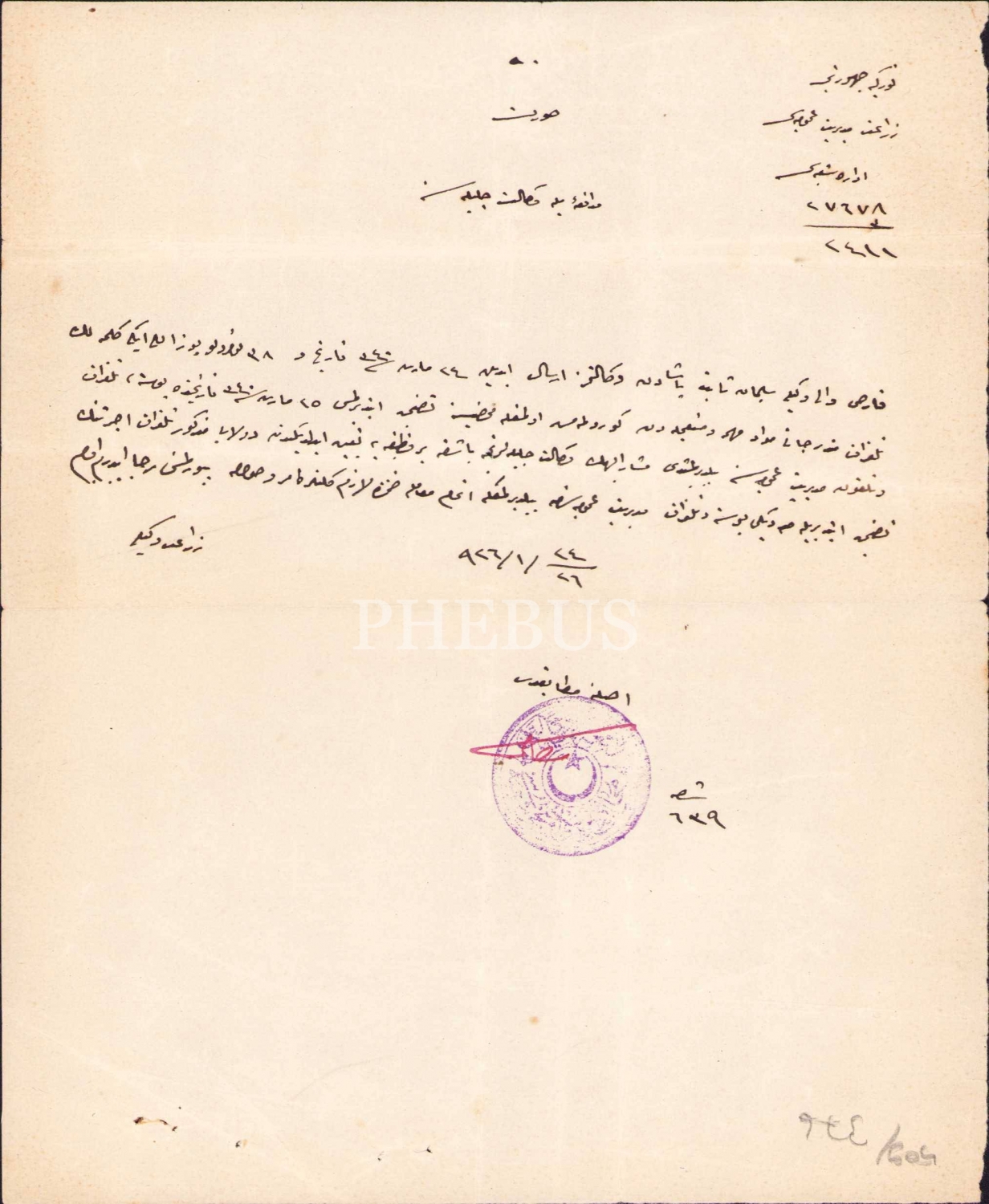 Türkiye Cumhuriyeti Ziraat Müdüriyeti İdare Şubesi tarafından Müdafaa-i Milliye Vekaletine gönderilmiş 1926 tarihli suret, 16x19 cm