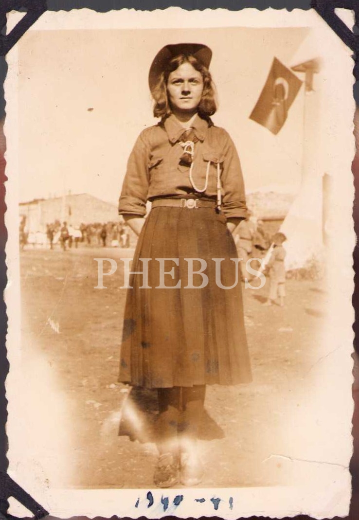 İzci kız talebe tören ve hatıra fotoğrafı, 1940, 6x9 cm