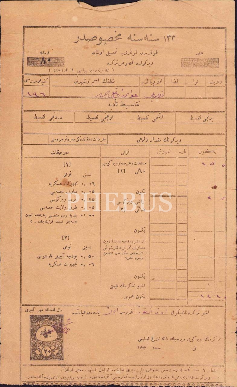 Osmanlıca doğrudan doğruya tahsil edilen vergilere mahsus tezkire, 1330'lar, haliyle, 15x25 cm