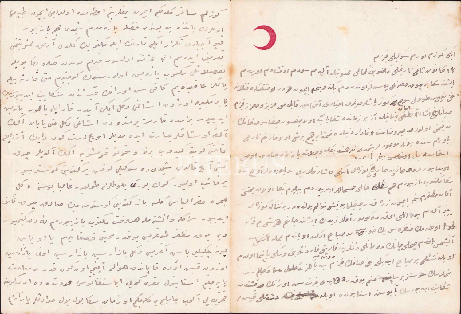 Hilal-i Ahmer antetli Osmanlıca iki gözümün nuru sevgili kızım ile başlayan Validen imzalı mektup, iki sayfa, 16x20 cm