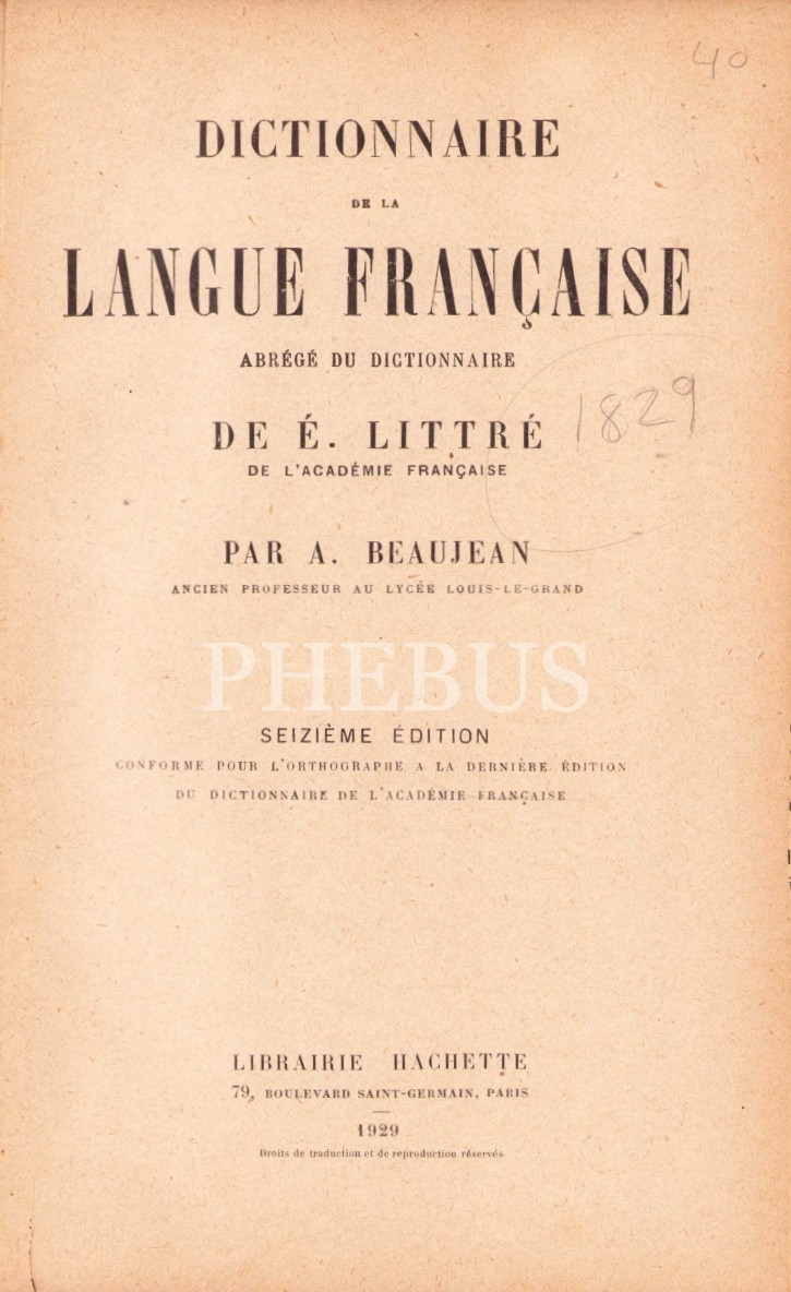 Dictionaire De La Langue Française, A. Beaujean, 16. baskı, Paris 1929, 1295 sayfa, 17x25 cm