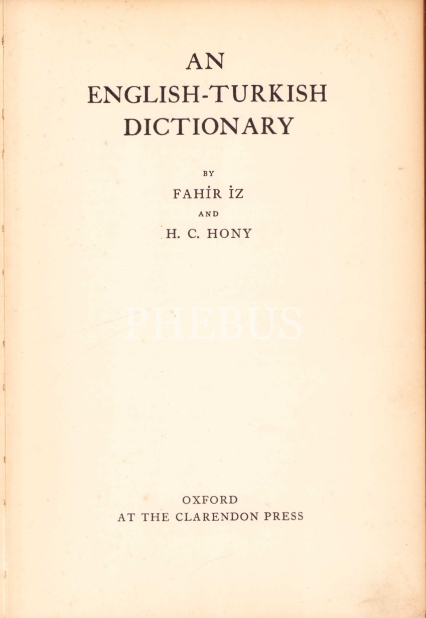 An English - Turkish Dictionary, Fahir İz - H. C. Hony, Oxford Press, 1955, 510 sayfa, 16x24 cm