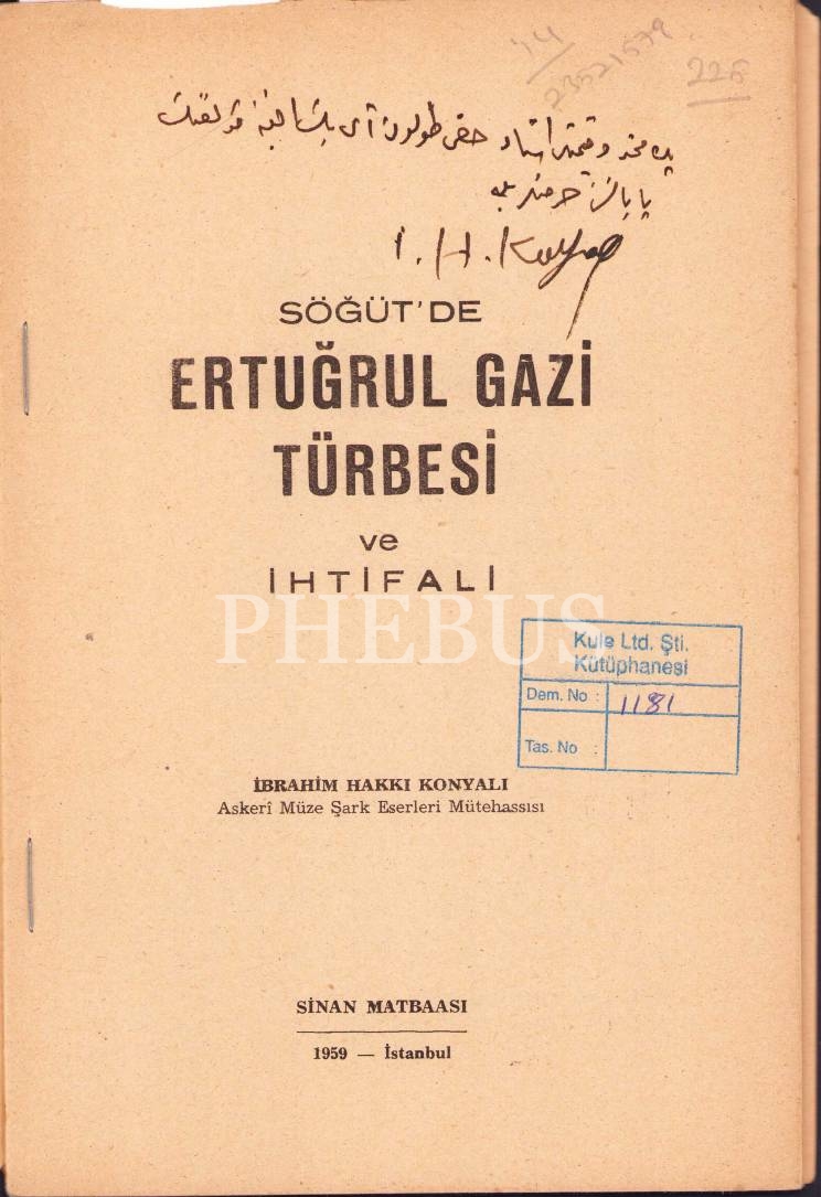Söğüt'de Ertuğrul Gazi Türbesi ve İhtifali, Tarihçi İbrahim Hakkı Konyalı'dan imzalı ve ithaflı, Sinan Matbaası, 1959, 63 sayfa, 16x24 cm