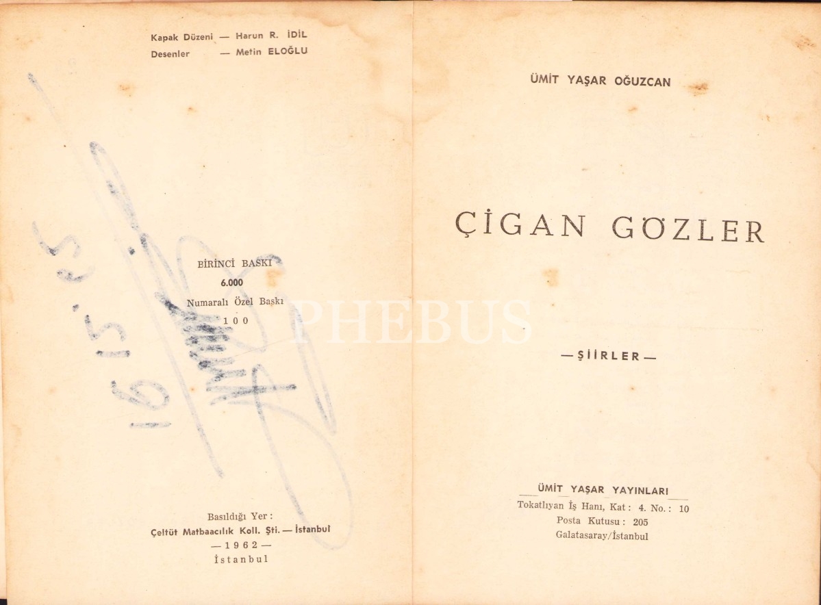 Çigan Gözler, Ümit Yaşar Oğuzcan'dan imzalı, Numaralı Baskı, 61 sayfa, 14x20 cm