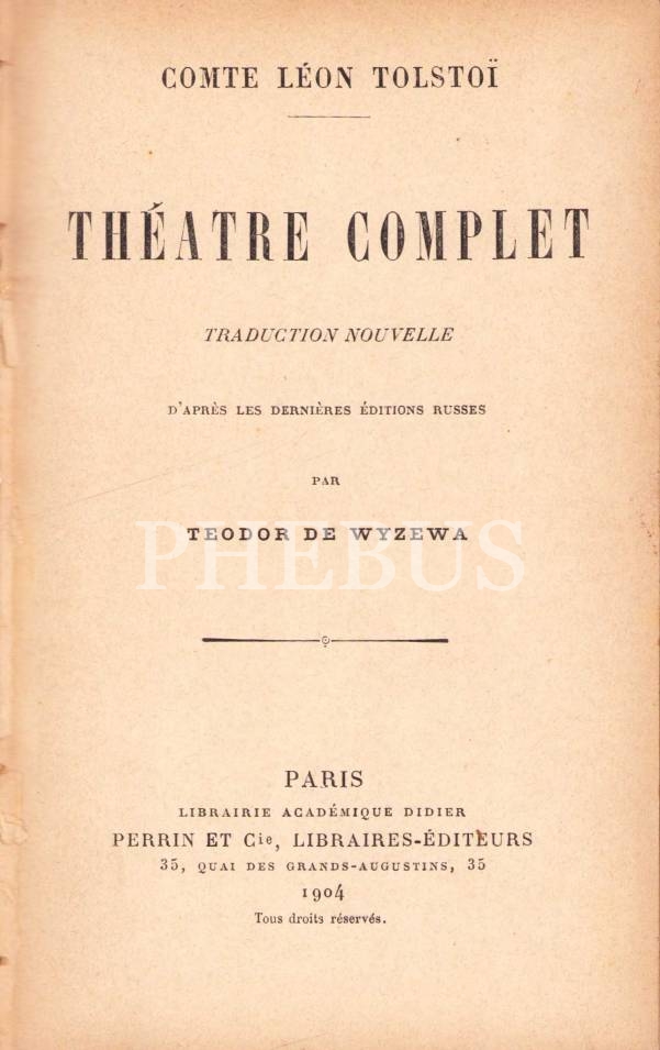 Theatre Complet [Tolstoy'un Tiyatro Eserleri], Comte Leon Tolstoi, 1904, Paris baskı, 358 sayfa, Fransızca, 11x18 cmya