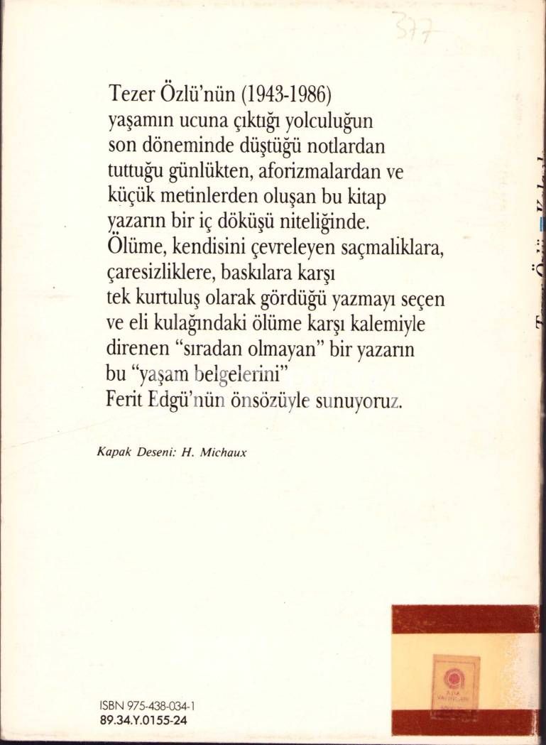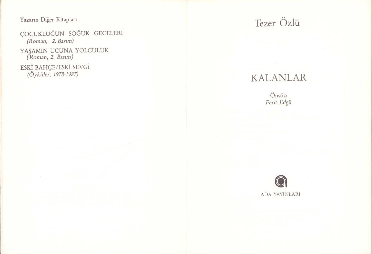 Kalanlar, Tezer Özlü, İlk Baskı, Ada Yayınları, 1990, 55 sayfa, 14x19 cm