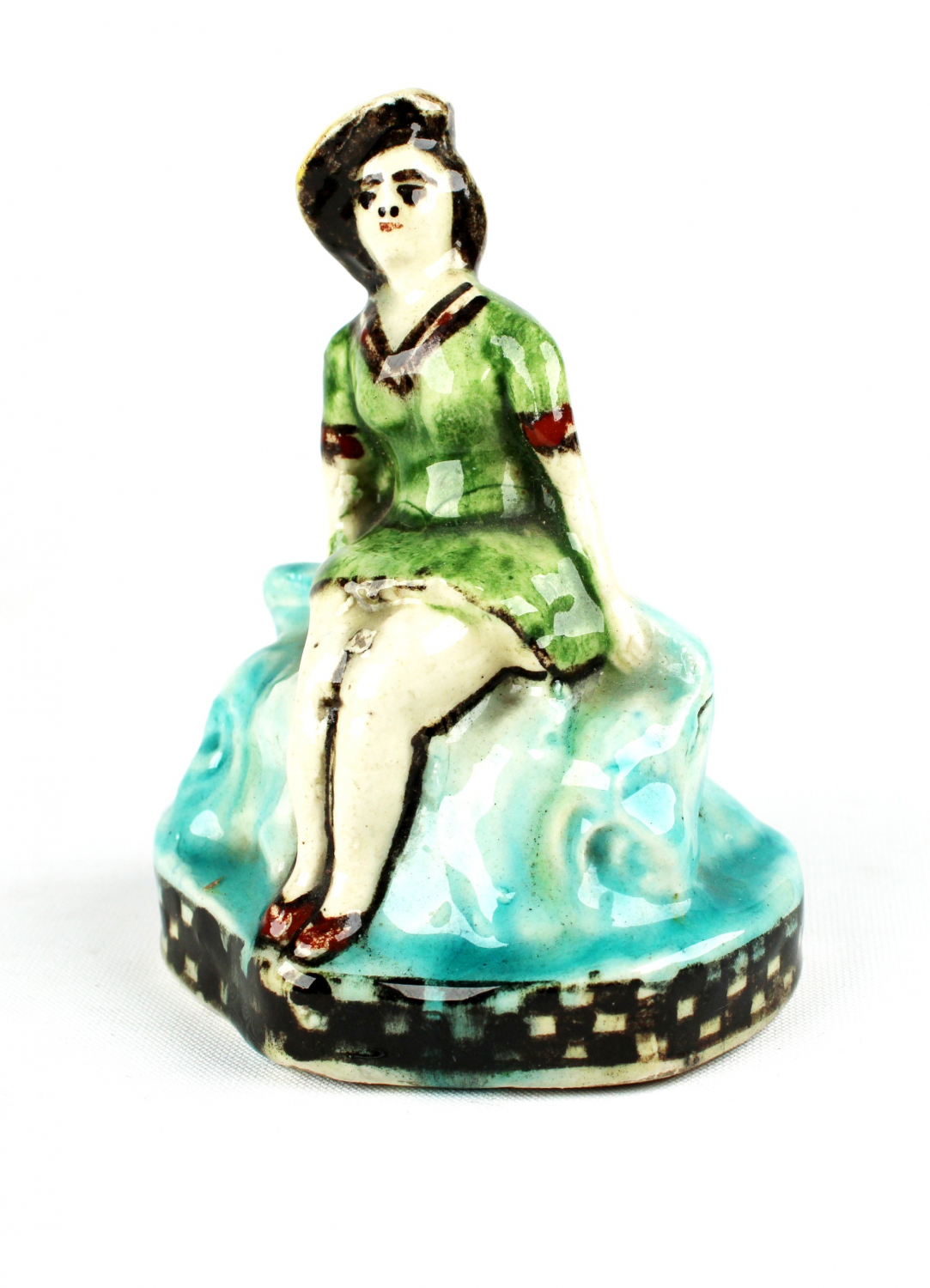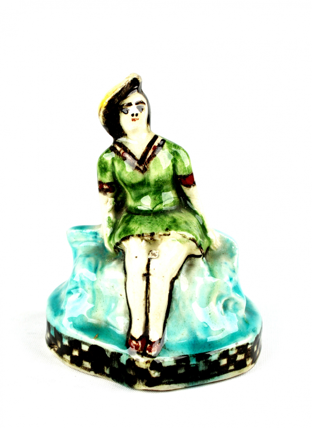 Kütahya seramik şapkalı kadın görselli biblo, 11x9cm