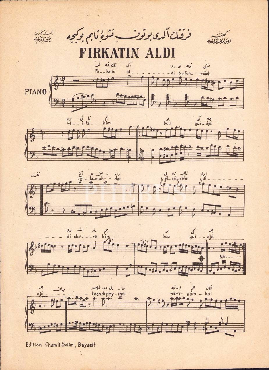 Osmanlıca Fransızca nota, Firkatin Aldı - Bestekar Bimen Efendi, Editör Şamlı İskender, 4 sayfa, 24x34 cm