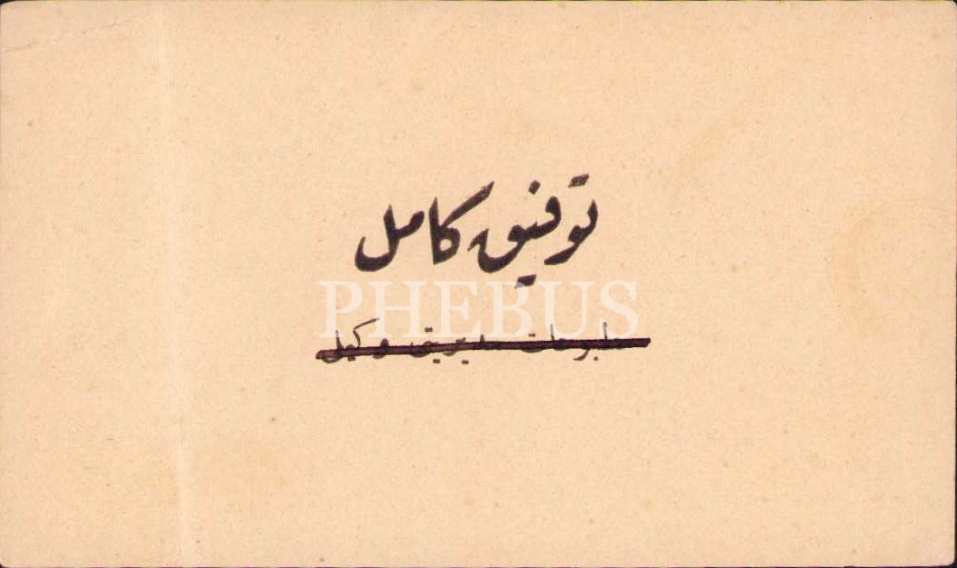 Osmanlıca kartvizit, Tevfik Kamil, 8x4 cm