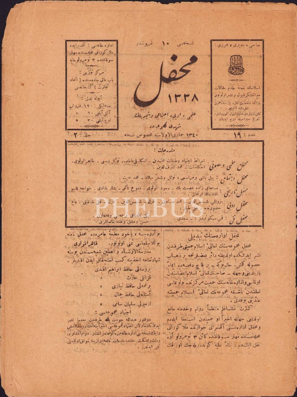 Osmanlıca Mahfil mecmuası, 1340 tarihli, kenarları haliyle, 18 sayfa, 20x27 cm