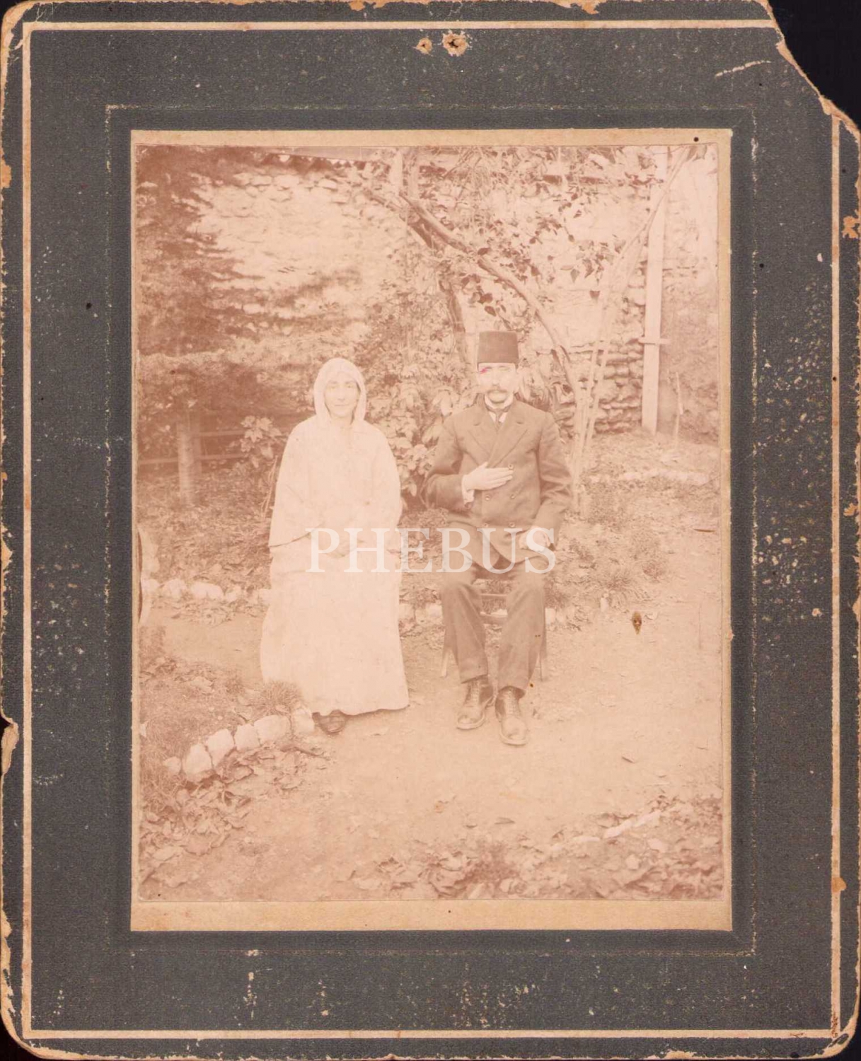 Arkası Osmanlıca ''Kadri Bey'e ailemizde naçizane hediyemizdir - 12 Mayıs 1340'' yazılı Osmanlı ailesi fotoğrafı, paspartulu, 13x16 cm, bir kenarı kopuk