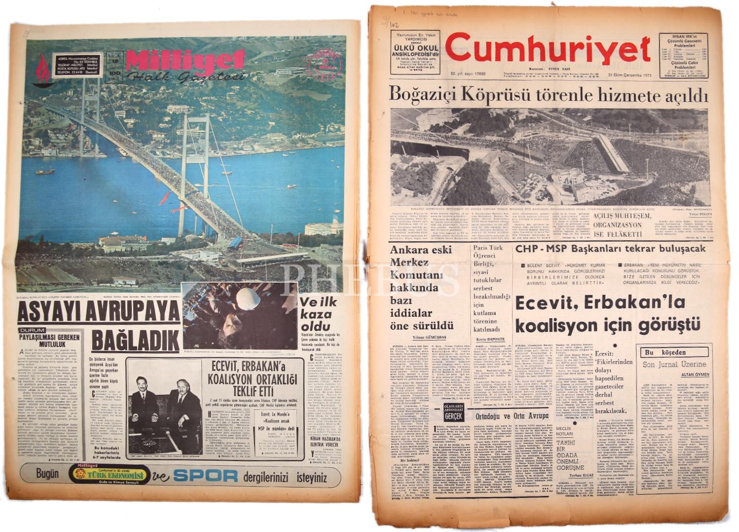 31 Ekim 1973 tarihli Cumhuriyet - Milliyet gazetesi, "Boğaziçi Köprüsü Törenle Hizmete Açıldı" - "Asyayı Avrupaya Bağladık", 40x60 cm