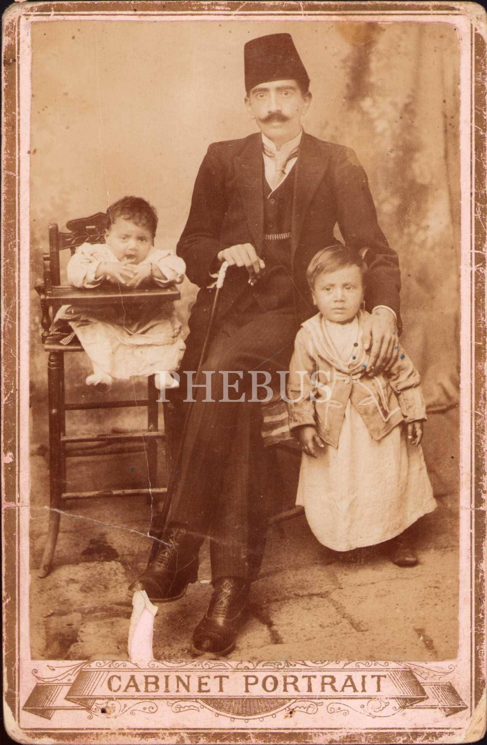 Fesli Osmanlı tip ve mahdumları kabin fotoğrafı, bir kenarı haliyle, 10x15 cm