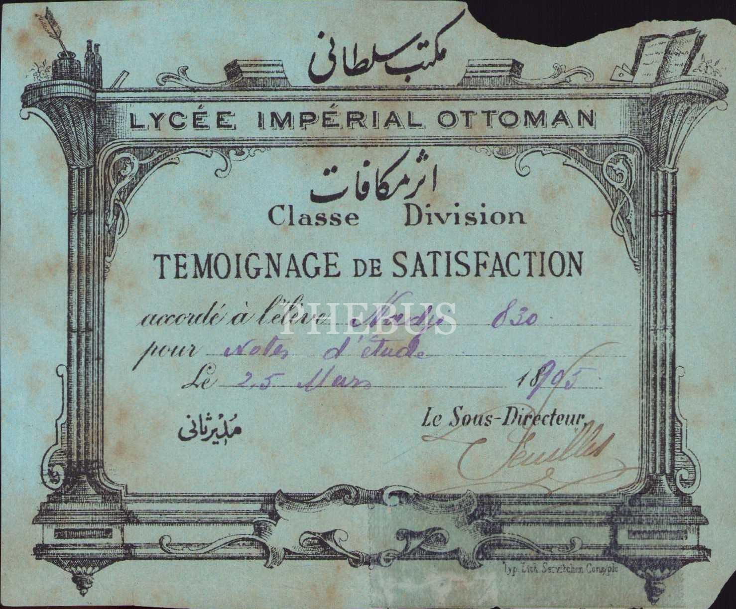Osmanlıca Fransızca mükafati Mekteb-i Sultani [Galatasaray Lisesi] 1905, haliyle, 12x10 cm