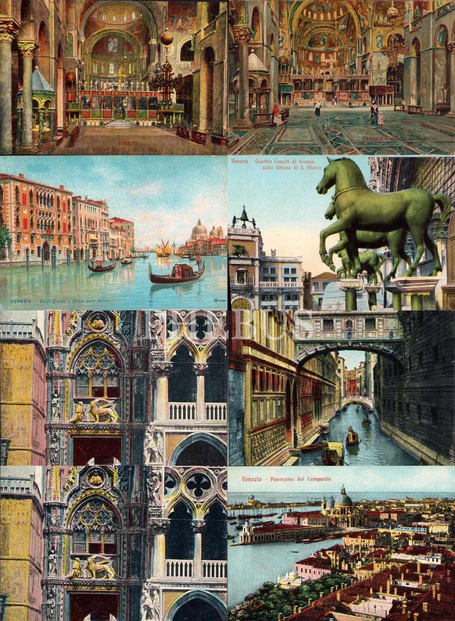 Osmanlı dönemi Venedik temalı kartpostal lotu, 8 adet