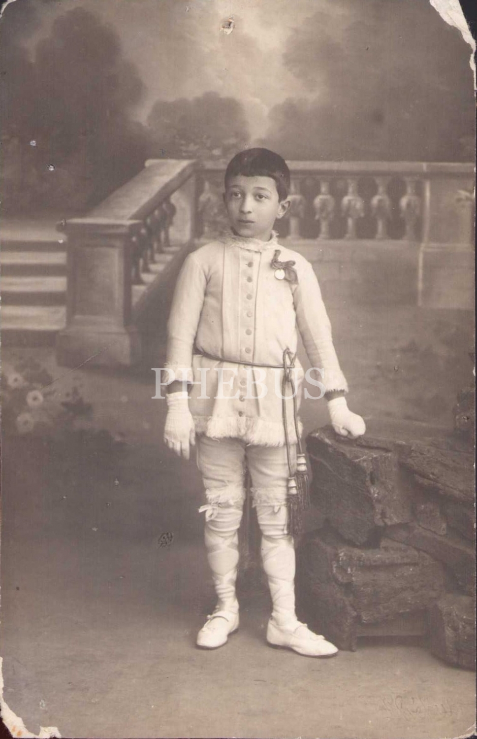 Phebus soğuk damgalı, madalyalı, üniformalı erkek çocuk kabin foto, bir kenar yok