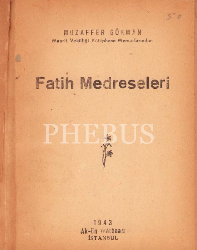 Fatih Medreseleri, Muzaffer Gökman, Ak-ün Matbaası, İstanbul 1943, 48 sayfa, 10x13 cm