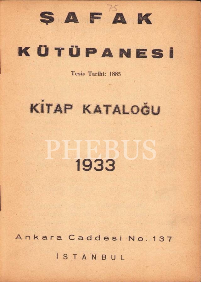 Şafak Kütüphanesi - Kitap Kataloğu 1933, İstanbul baskı, 62 sayfa, 12x17 cm