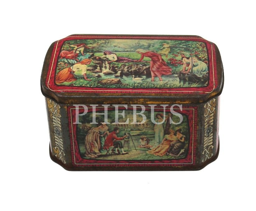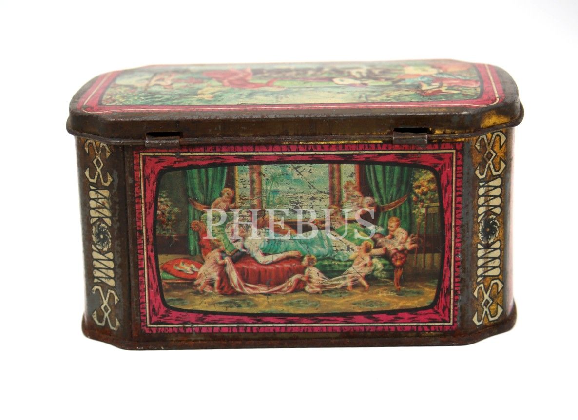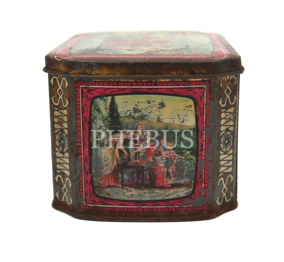 Bol görselli teneke kutu, 15x10 cm, kapağı zor açılıyor