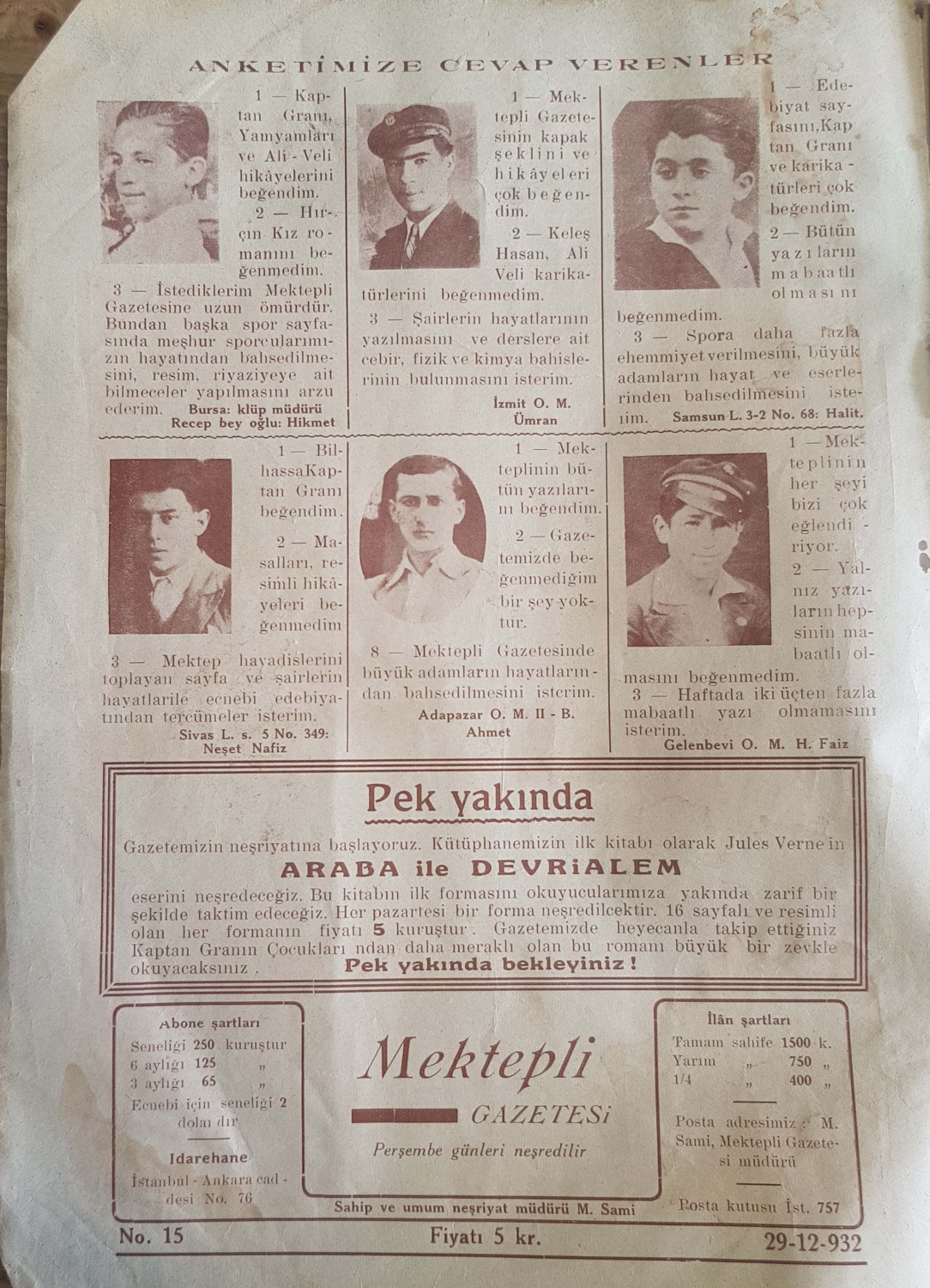 Mektepli Gazetesi, Sahibi M. Sami, No: 15, 1932 tarihli, 30 sayfa, 20x29cm