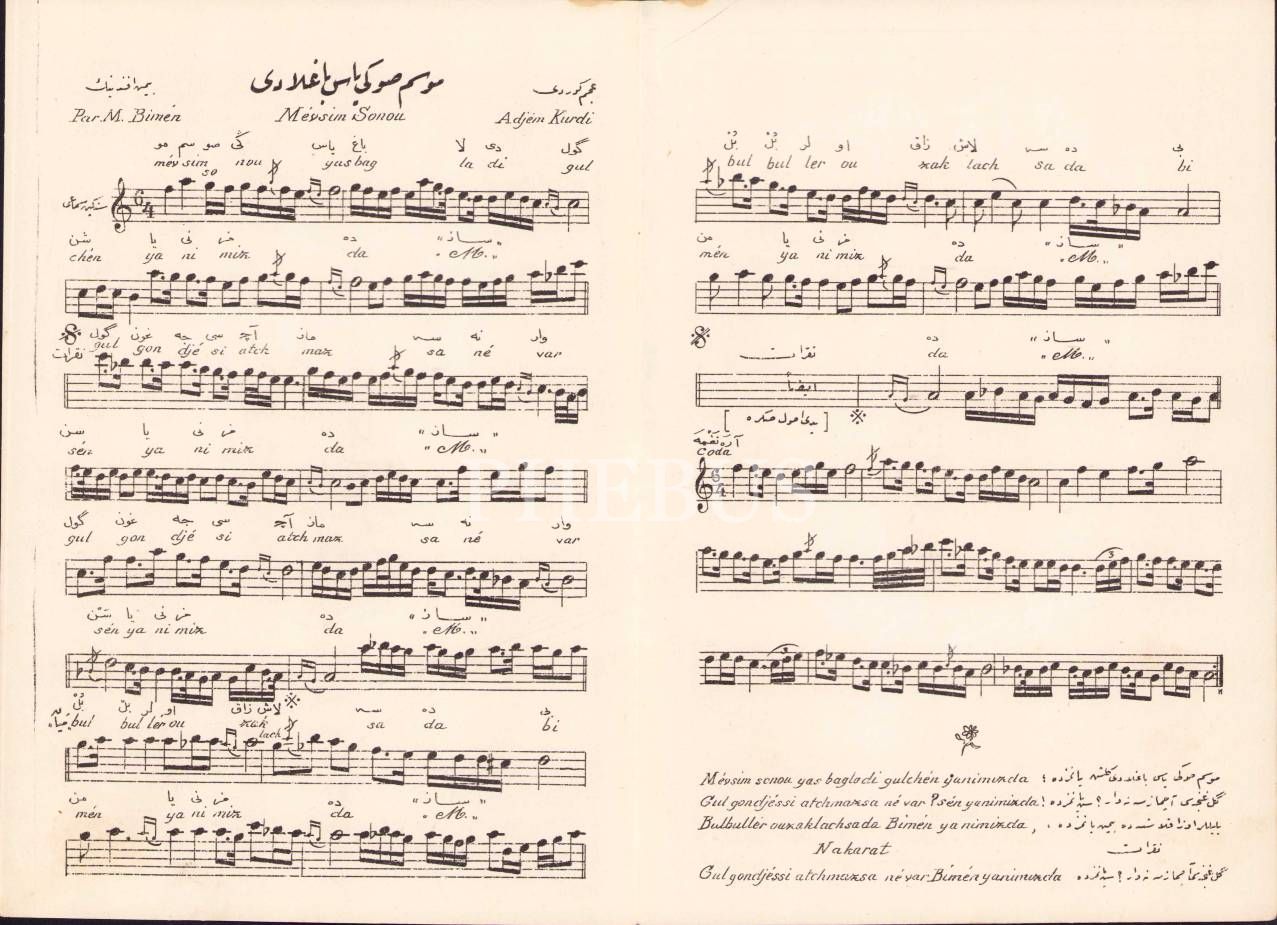 Osmanlıca nota, Müntehabat, Mevsim Sonu Yas Bağladı - Bestekar Şehir Bimen Efendi, Editör Şamlı İskender, 4 sayfa, 13x19 cm