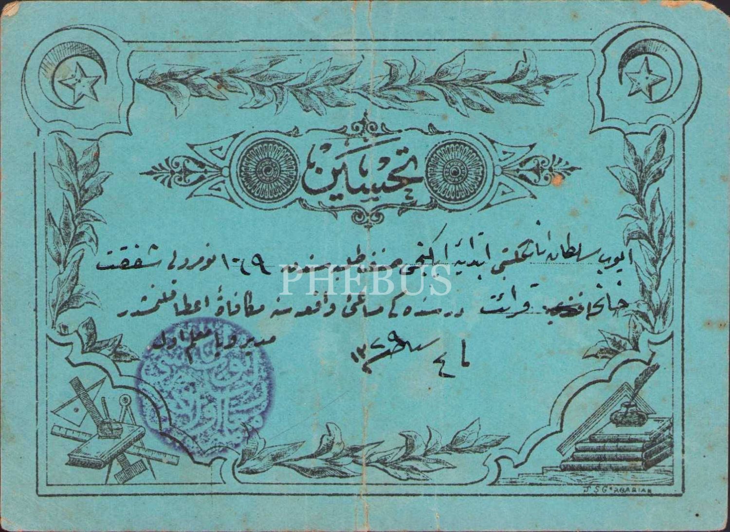Osmanlıca tahsin, Eyüp Sultan İnas Mektebi - 1329 tarihli, 12x8 cm