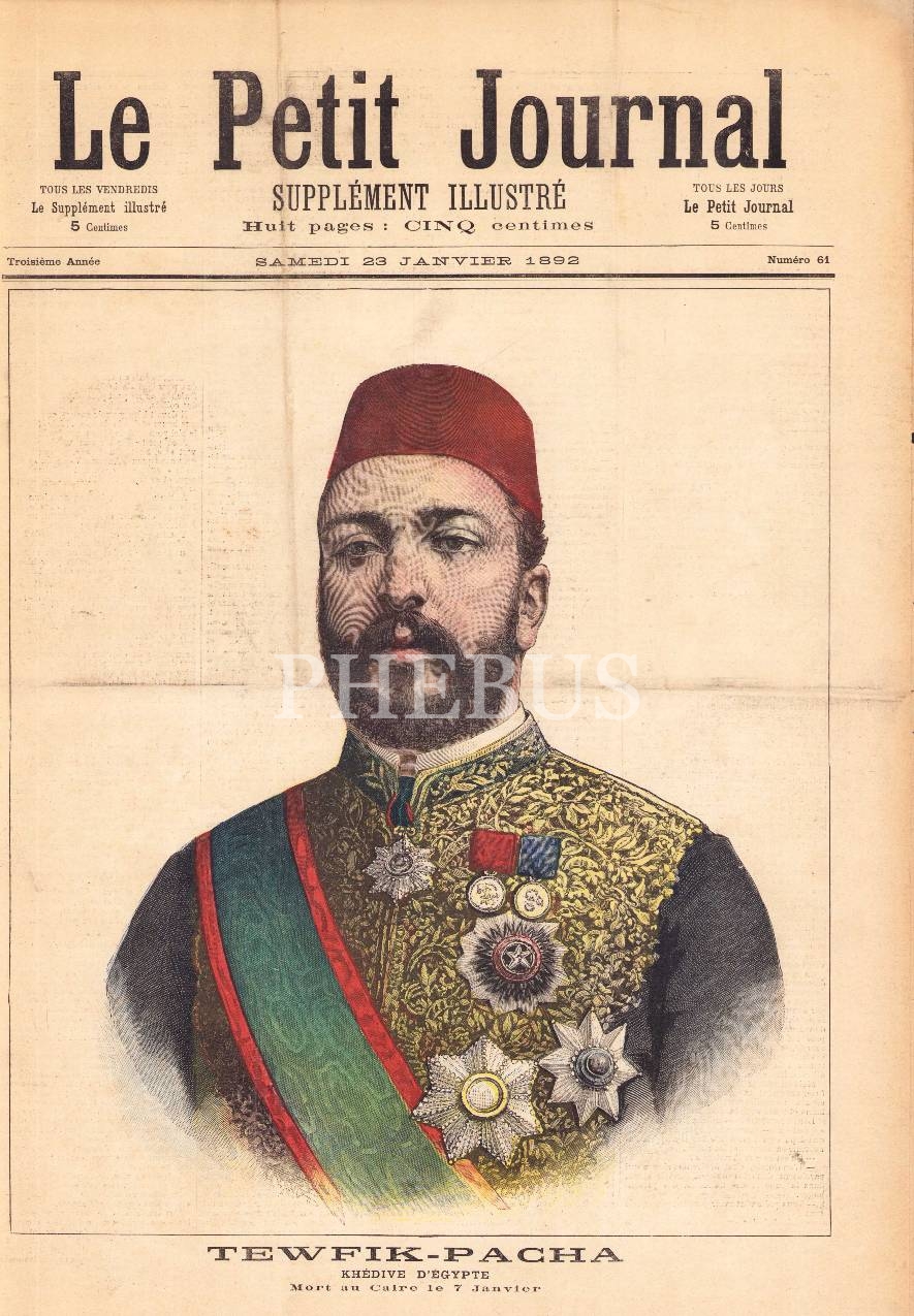 Mısır Hidivi Tevfik Paşa kapaklı Le Petit Journal gazetesi, 23 Ocak 1892, 8 sayfa, 30x40 cm