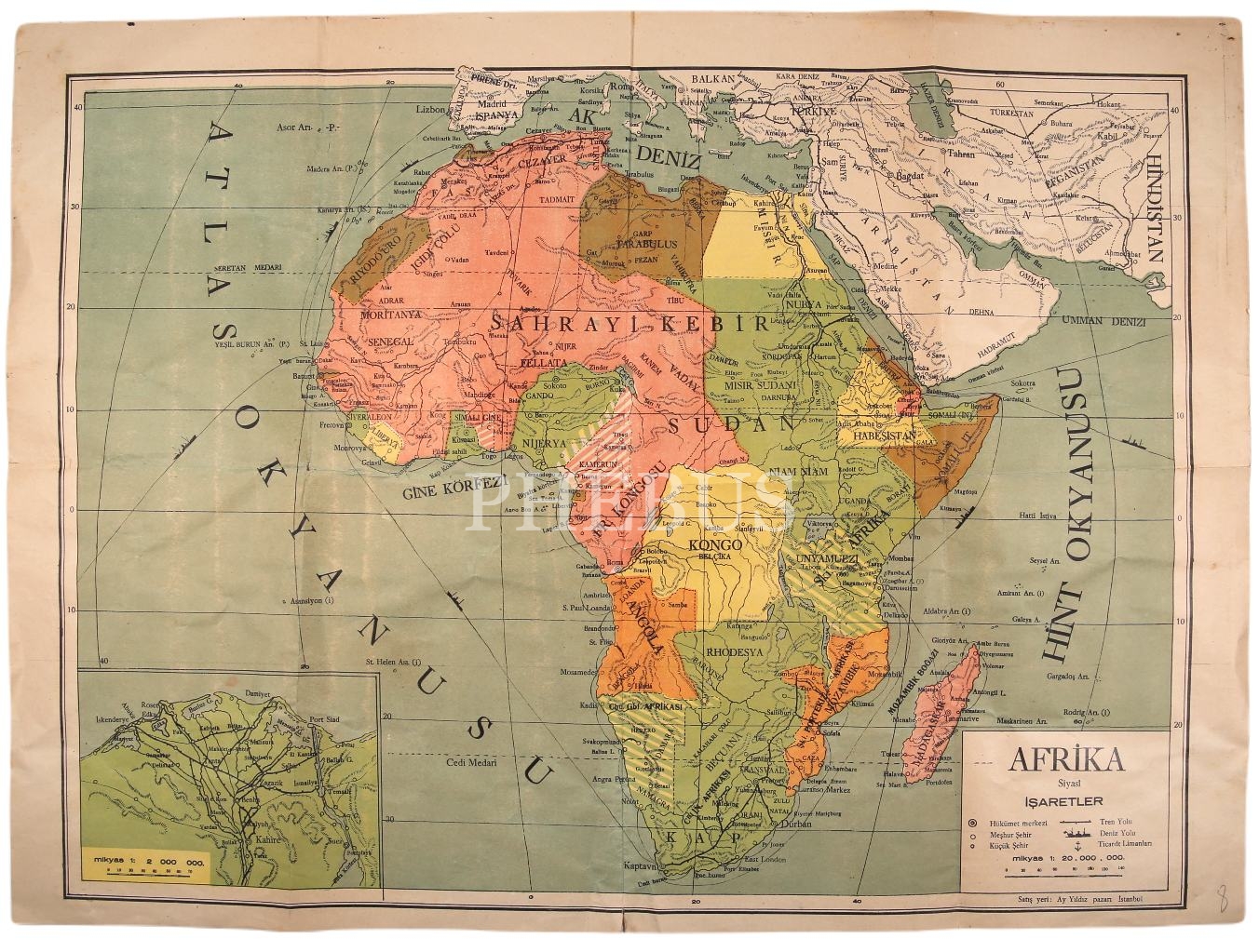 Afrika haritası, İstanbul baskı, ortası yırtık, 78x50 cm