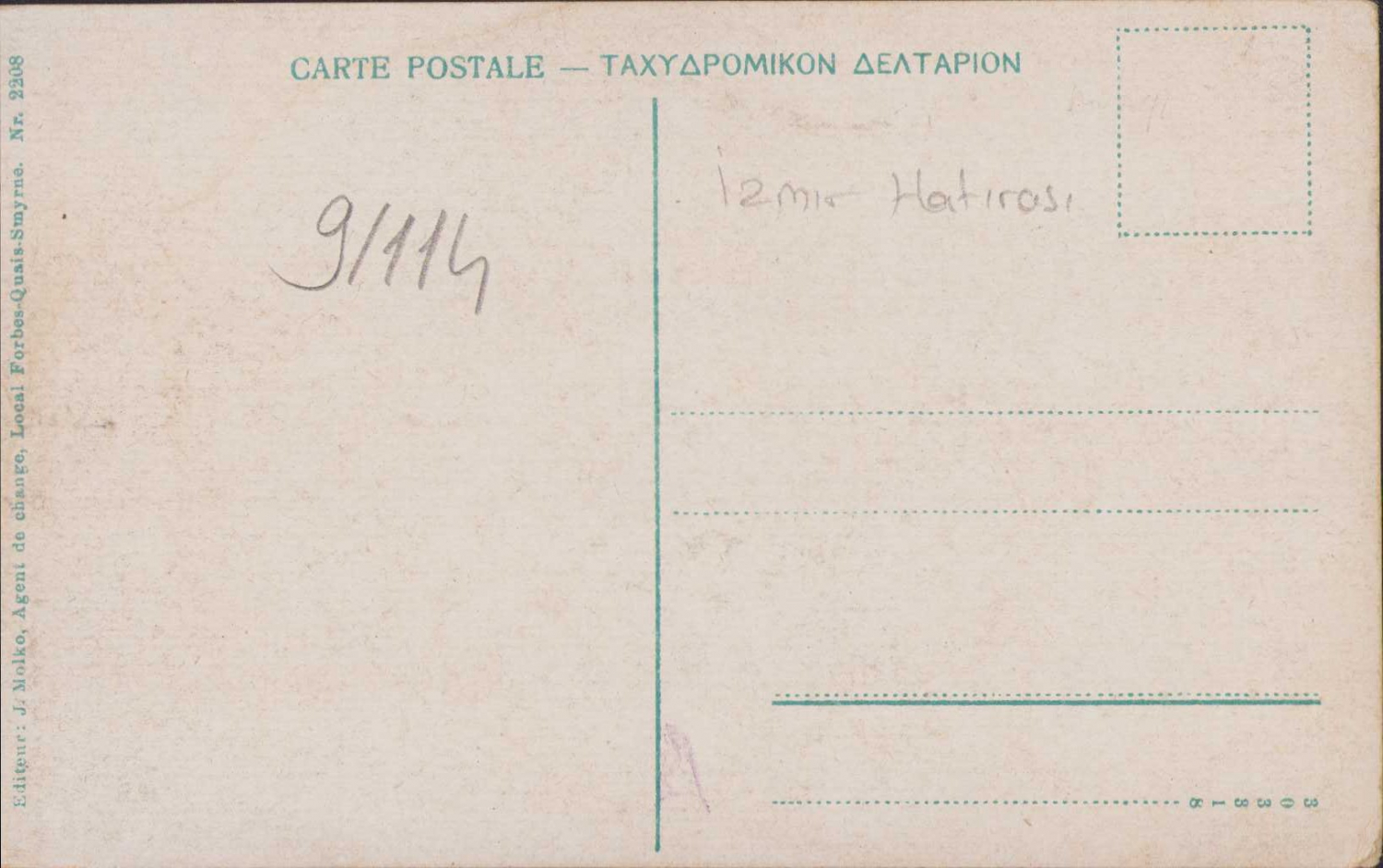Osmanlı dönemi Smyrne (İzmir) rıhtım genel görünüm, Editör J. Molko, İzmir baskısı